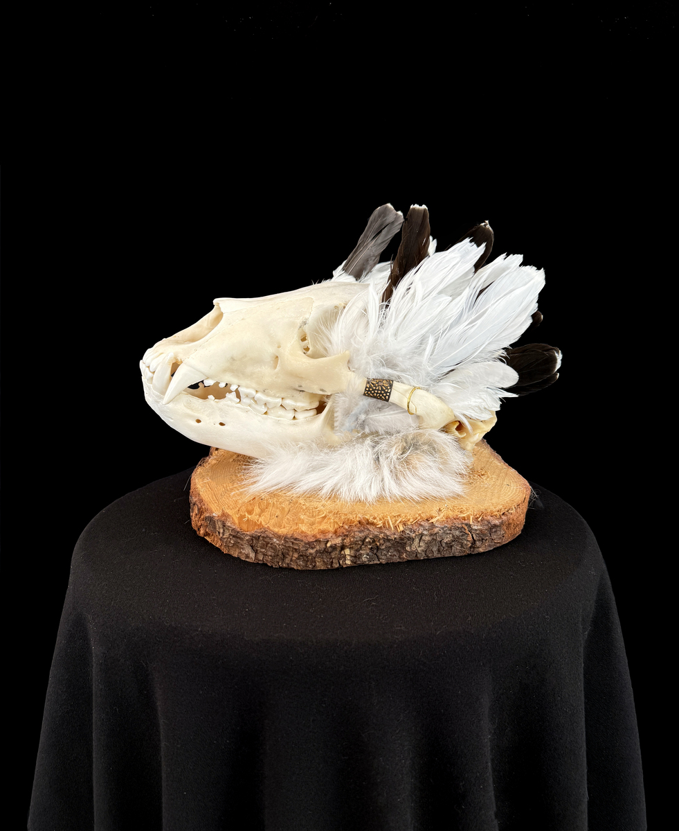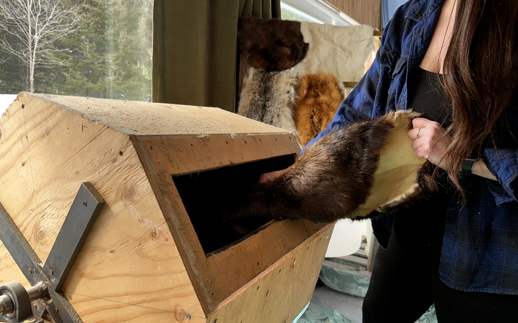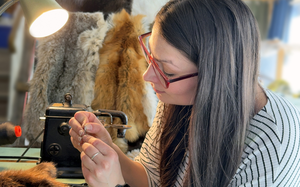 La Trappeuse du Nord c'est Stéphanie Brousseau, une artiste émergente en métiers d'art, spécialisé dans la création d’œuvres, de naturalisation animalière et d’accessoires utilisant la fourrure comme matière première. Originaire de la Baie-James, elle est maintenant Témiscabitibienne, les valeurs du respect de la nature lui ont été inculquées depuis sa tendre enfance par sa famille. Dans ce respect, la valorisation de chaque prise est primordiale, c’est ce qui la pousse à développer ces techniques de tannage, couture, naturalisation et décoration de la fourrure depuis 2019. C’est la passion des traditions transmises oralement et par le mentorat, notamment à travers des discussions informelles, avec des trappeurs, tanneurs et taxidermistes, qui est le point de départ de son processus créatif. Elle accorde un grand respect à ces échanges qui l’animent, l’alimentent, l’informent et lui permettent de perfectionner ses techniques. Bien que son travail se déroule principalement seul dans son atelier, ce sont ces interactions humaines qui initient tout. La qualité de la fourrure comme médium est au cœur de son travail, avec une sensibilisation constante à la pérennité de cette ressource naturelle.